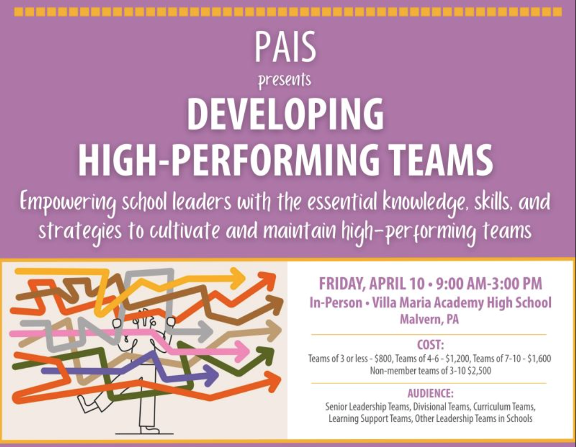 On April 10, I'm leading Developing High-Performing Teams with the Pennsylvania Association of Independent Schools (PAIS).